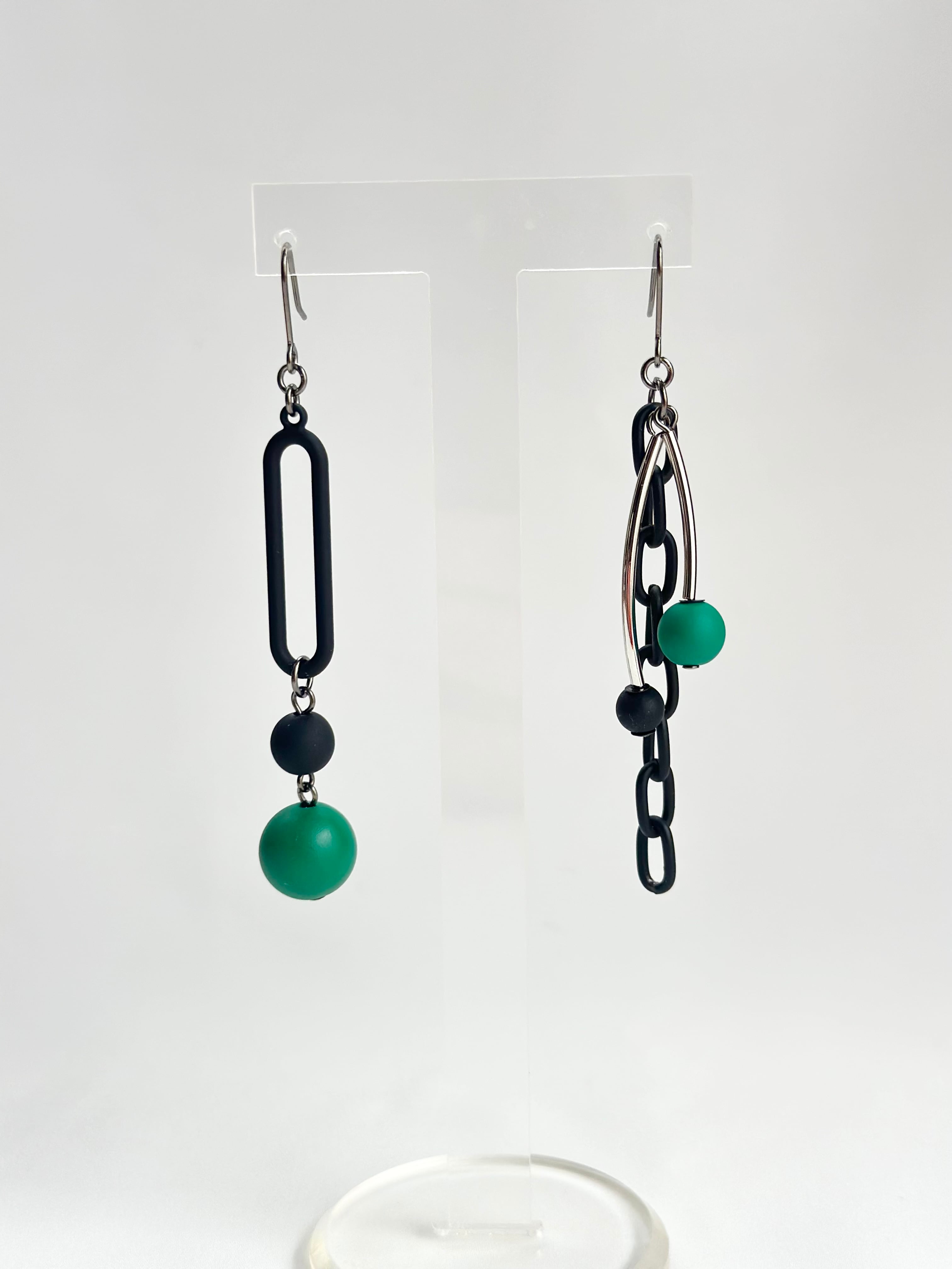 個性的ながらシンプルで、どんなスタイルにも馴染む使いやすいアシンメトリーピアス。
