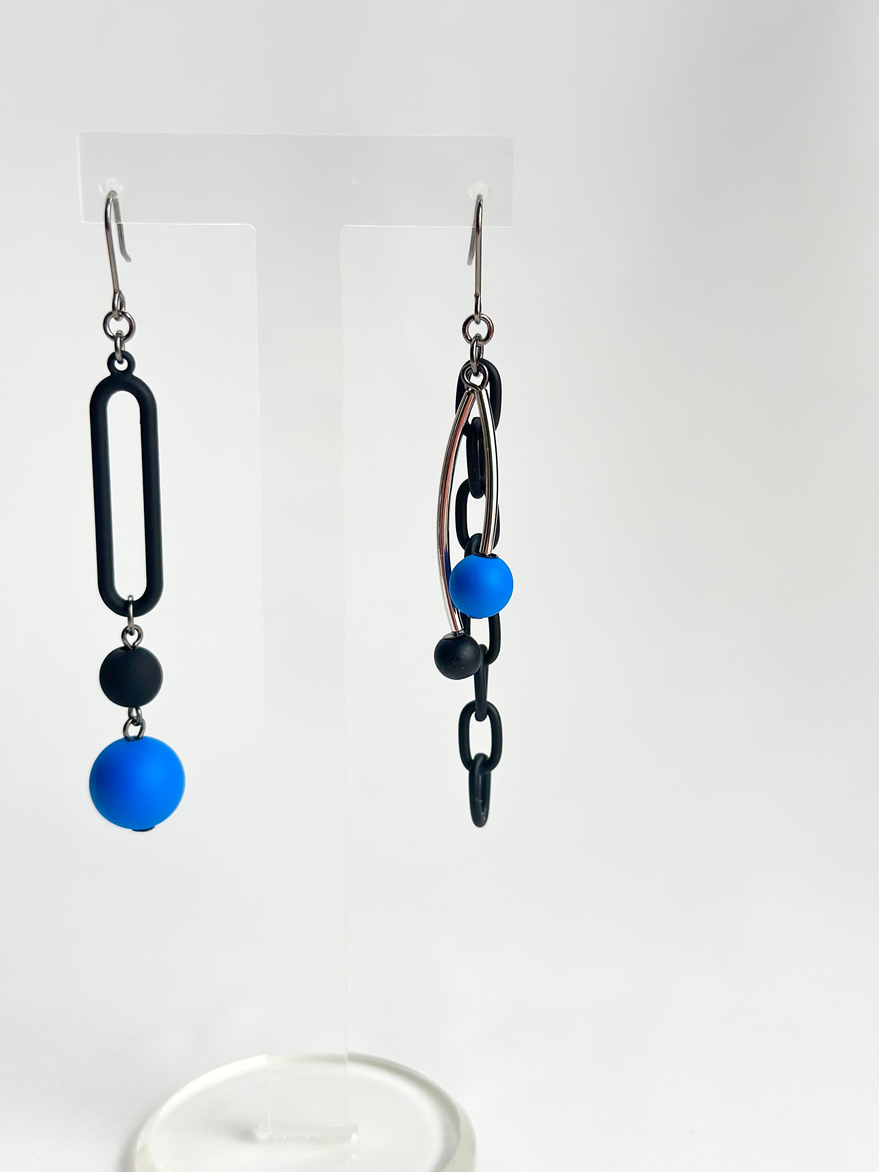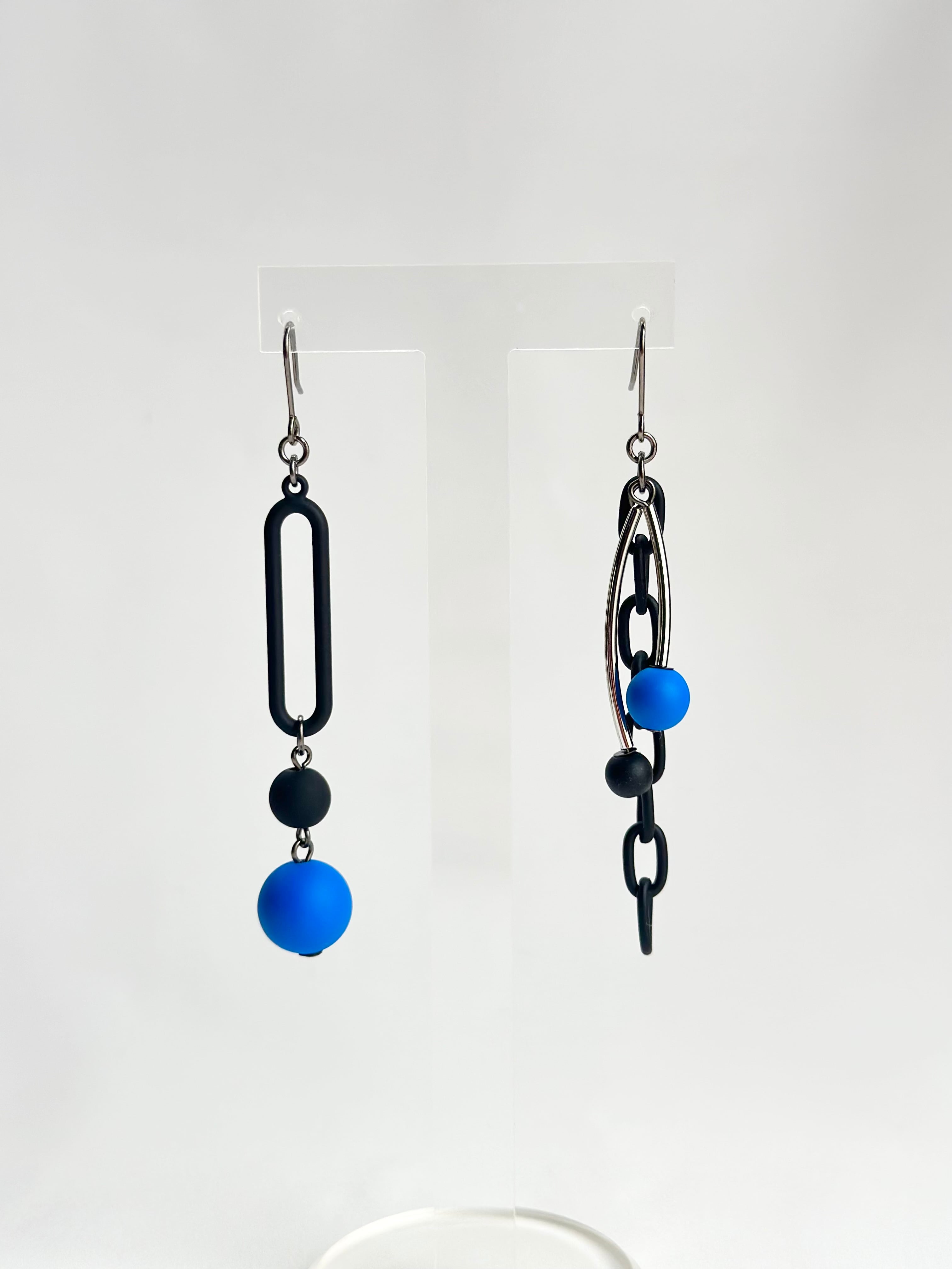 個性的ながらシンプルで、どんなスタイルにも馴染む使いやすいアシンメトリーピアス。